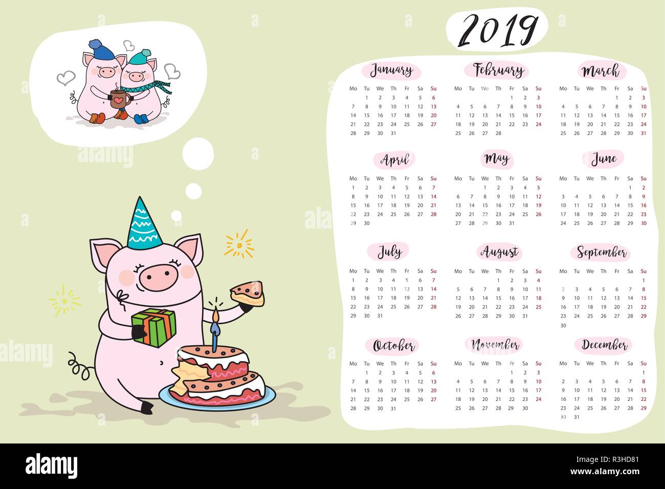 Calendario 2019 Con Divertenti E Maiale Carino Carne Di Maiale Simbolo Del Nuovo Anno Immagine E Vettoriale Alamy