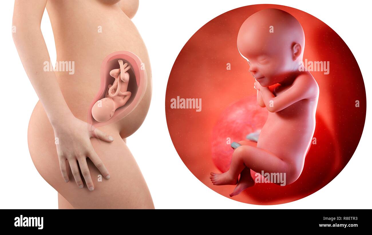 Illustrazione Di Una Donna In Stato Di Gravidanza E 30 Settimana Del Feto Foto Stock Alamy