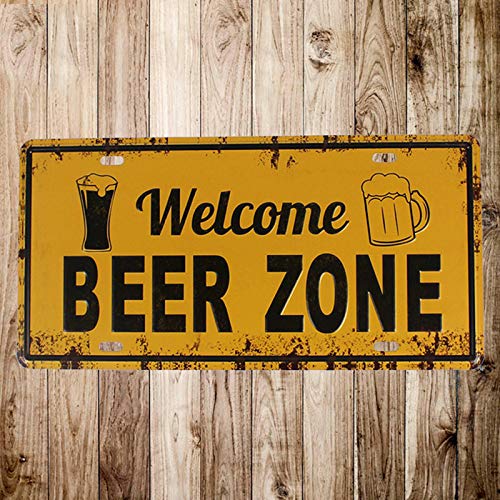 Beer Zone Segno Arredo Per Il Bar Pub Club E Ristorante Per Il Promozione Della Birra Size 30x15cm 1x Birra Metallo Di Bottiglia Di Birra E Tazza Con Parola Welcome Itemer Pubblicita