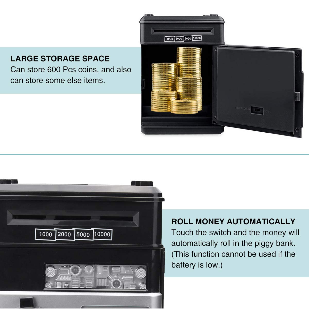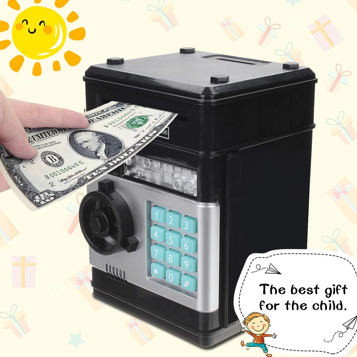 Safetyon Salvadanaio Elettronico Con Parola Dordine Monete E Banconote Bambini Digitale Elettronico Regalo Di Compleanno Nero Salvadanai Mobili Contenitori E Arredamento Per Bambini