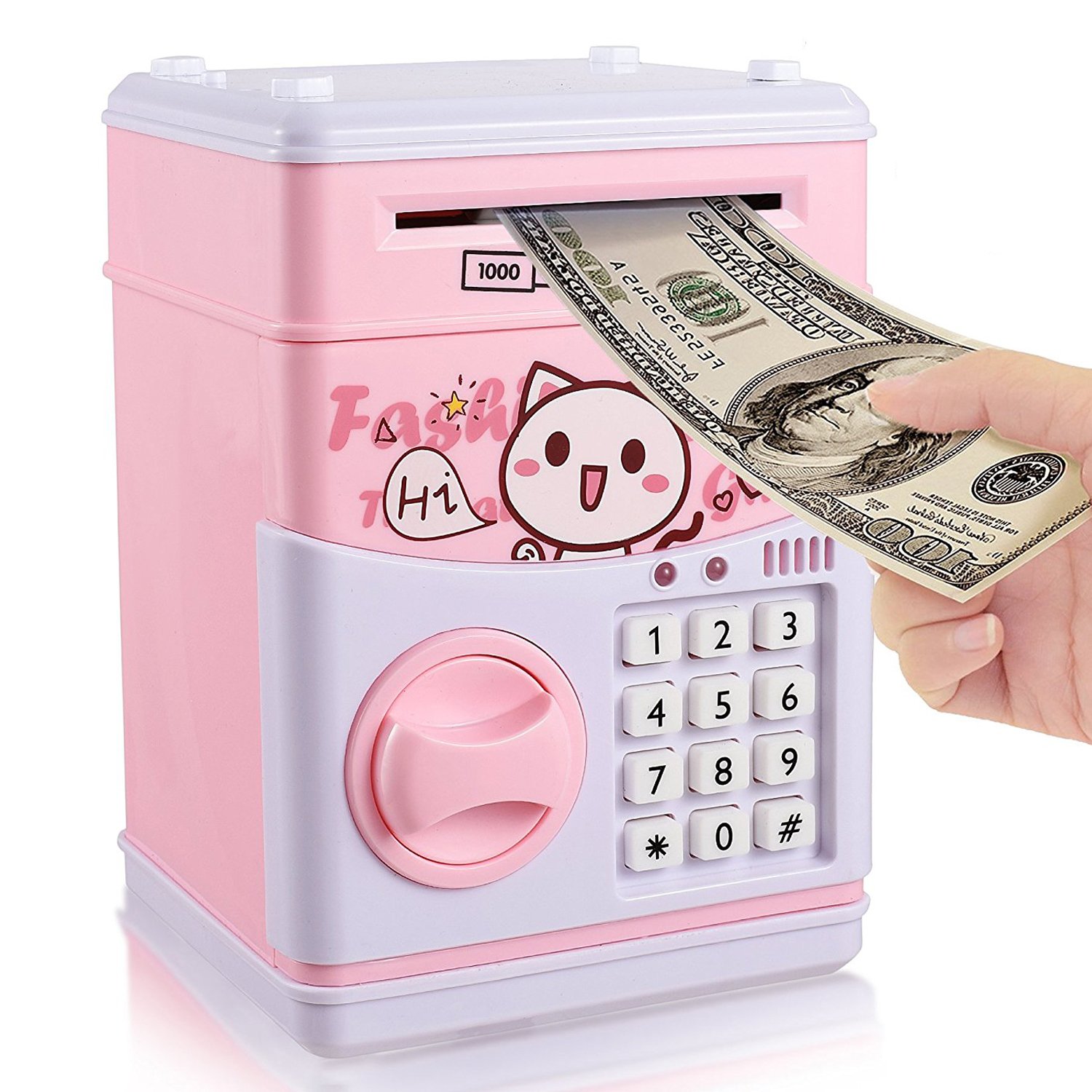 Kidoo Rosa Colore Salvadanaio Elettronico Atm Per Bambini Piccole Casseforti Per Contanti E Assegni
