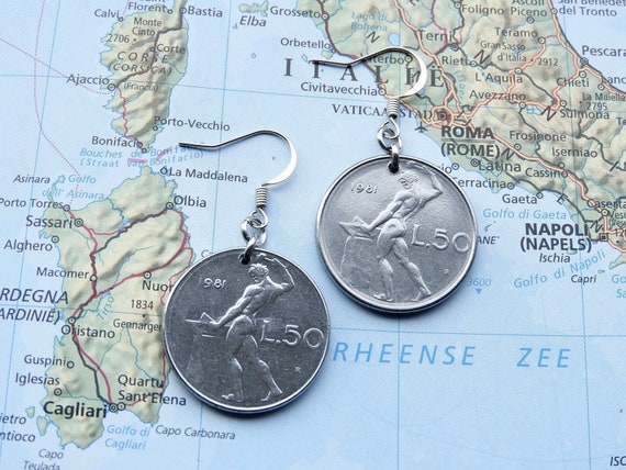 Italia 50 Lire Moneta Orecchini 1954 1955 Etsy
