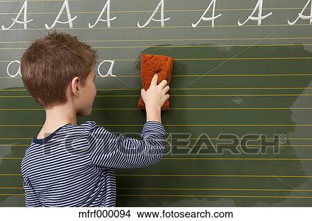 Scolaro A Lavagna Pulire Lontano Lettera Immagine Mfrf000094 Fotosearch