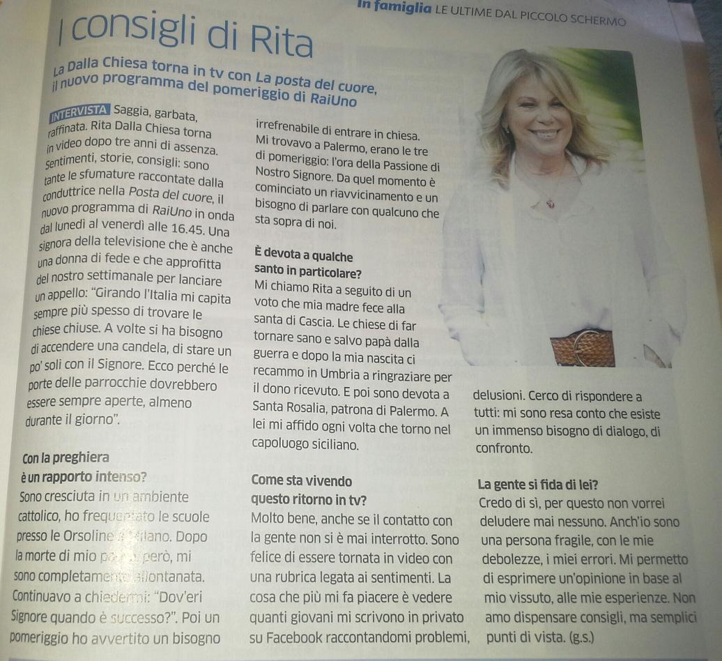 Giulio Serri On Twitter Ritadallachiesa Uscita La Sua Intervista Sul Settimanale A Sua Immagine Grazie Ancora Lapostadelcuore Http T Co Rgs1nm9o31