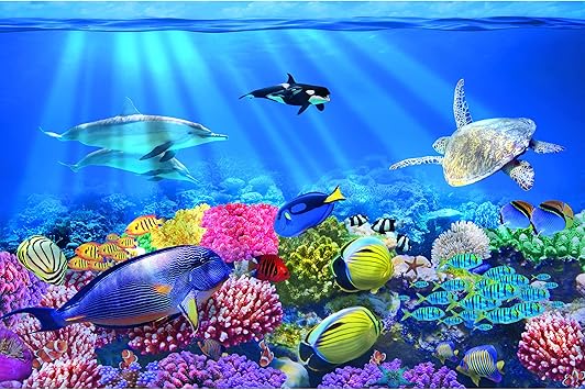 Great Art Fotomurale Per Camera Dei Bambini Acquario Decorazione Colorata Mondo Sottomarino Creature Del Mare Delfino Barriera Corallina Carta Da Parati 336 X 238 Cm Amazon It Fai Da Te