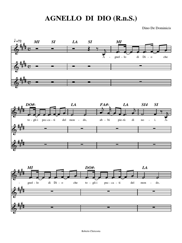Agnello Di Dio Sheet Music For Soprano Tenor Alto Choral Musescore Com