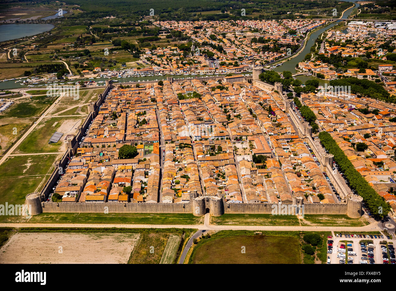 Vista Aerea Centro Storico La Citta Fortificata Di Aigues Mortes Le Porte Della Citta Camargue Aigues Mortes Francia Languedoc Roussillon Foto Stock Alamy