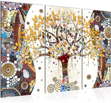 Runa Art Klimt Albero Della Vita Quadri Soggiorno Grande Colorato Astratto Albero 120 X 80 Cm 3 Pezzi Decorazione Murale 004631a Amazon It Casa E Cucina