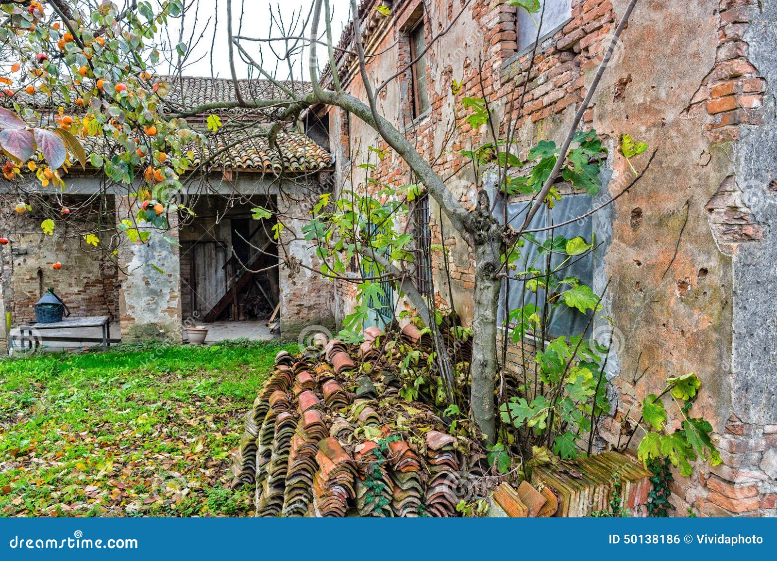 Albero Di Cachi E Fattoria Fotografia Stock Immagine Di Farmstead 50138186