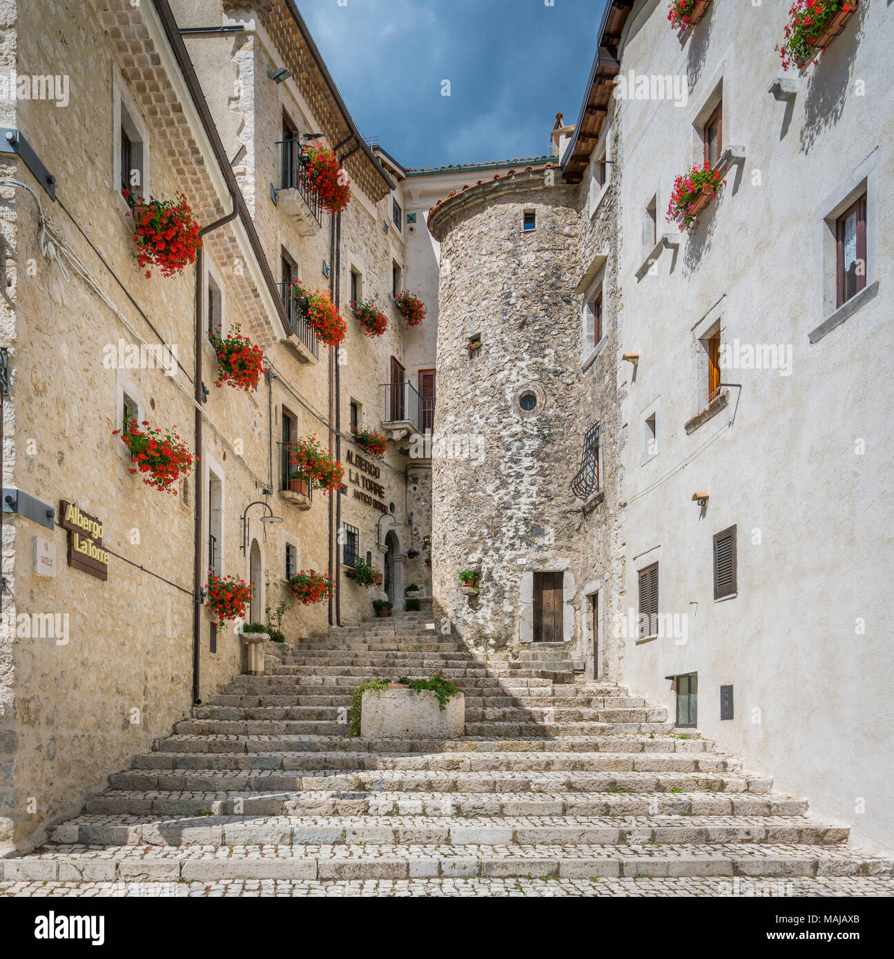 Civitella Alfedena In A Summer Afternoon Province Of L Aquila Abruzzo National Park Italy Editorial Stock Photo Image Of House Flowers 105550828