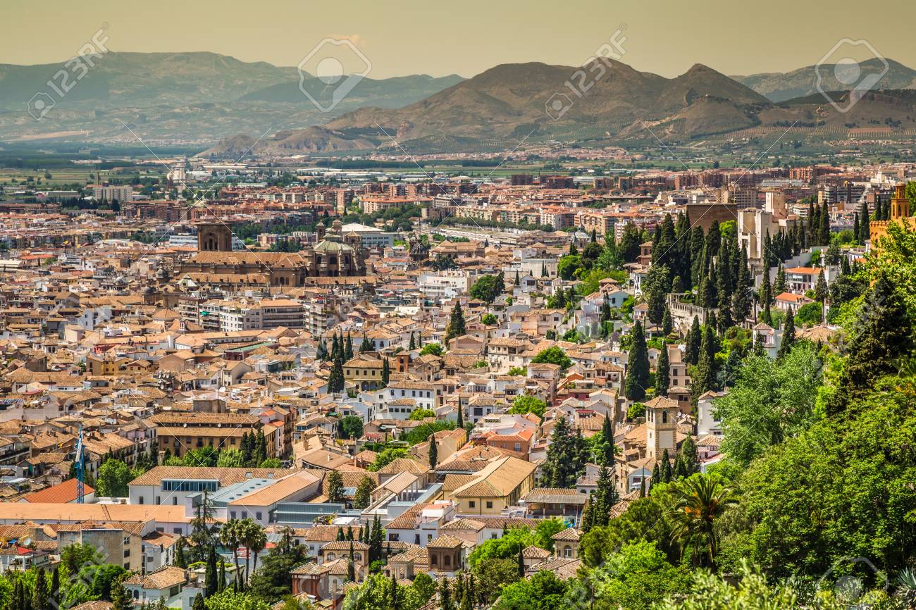 Immagini Stock La Spagna Regione Dell Andalusia Panorama Della Citta Di Granada Dal Punto Di Vista Di Alhambra Image 48284427