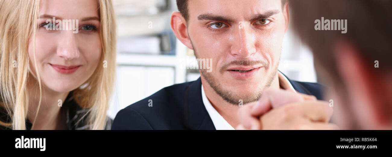 Two Alpha Man In Suit Hold Hands In Wrestle Fotografie Stock E Altre Immagini Di Accordo D Intesa Istock