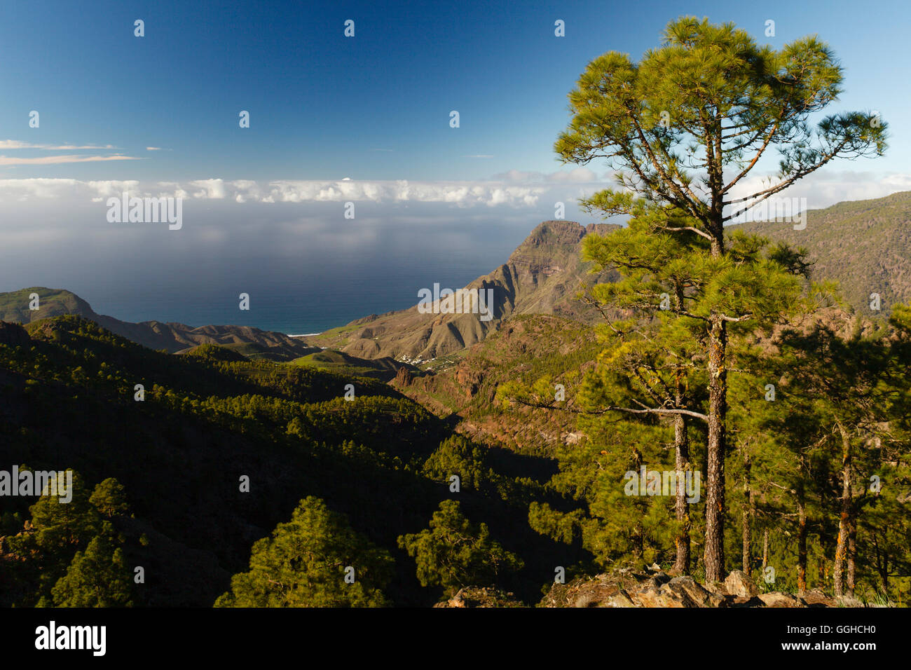 Immagini Stock Gran Canaria Caldera De Tejeda A Maggio La Catena Montuosa Dell Altavista E Coperta Di Nuvole Il Teide A Tenerife Visibile A Destra Image 40705767