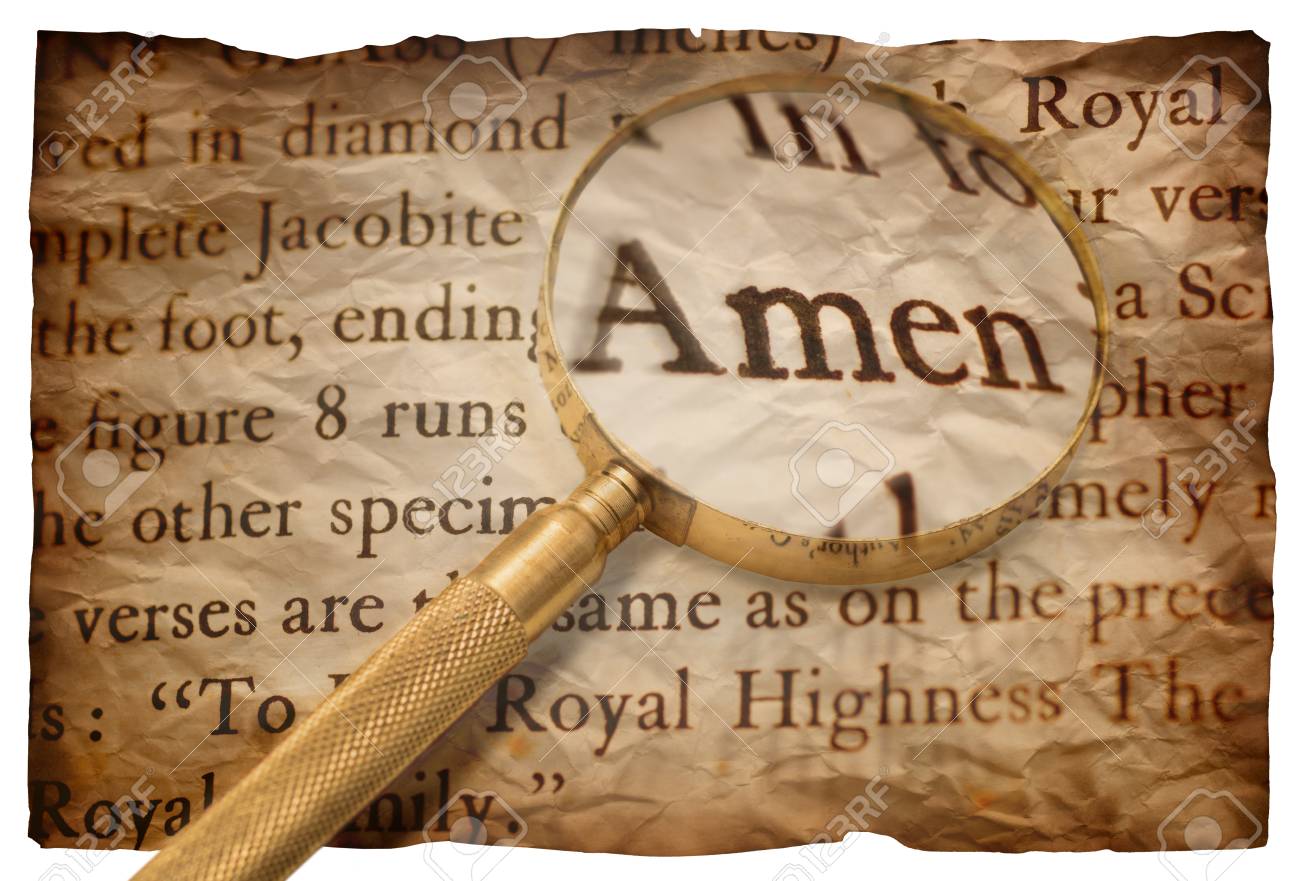 Immagini Stock Amen Parola Ingrandita Nella Pagina Di Un Libro Antico Che E Piu Di 200 Anni La Pagina E Da Un Libro Su Antichi Bicchieri Image 31636336