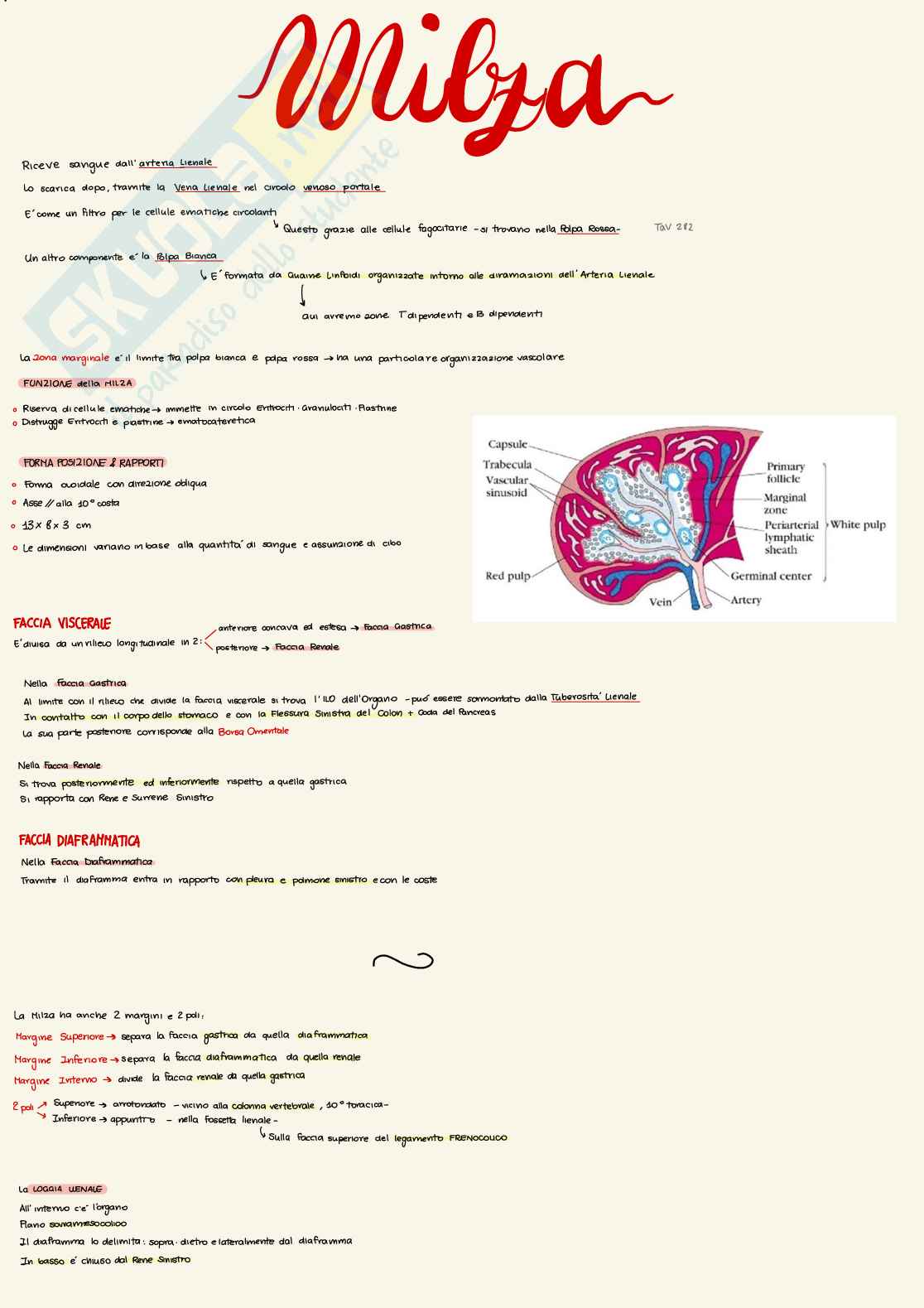 Apparato Circolatorio La Milza Appunti Oss
