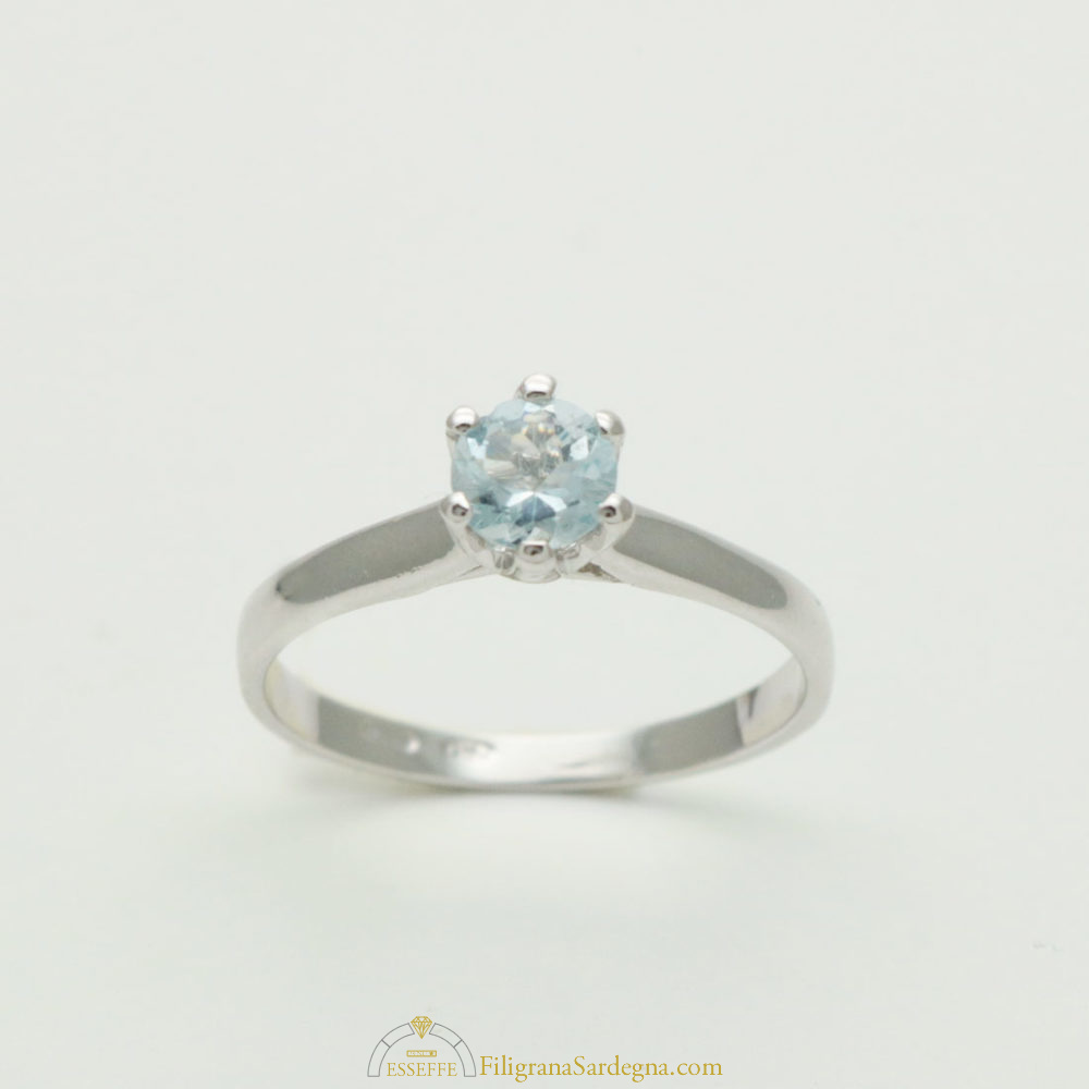 Anello Con Acquamarina Solitario In Oro Bianco 18 Kt Gioielli Aurum