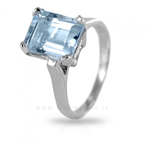 Anello In Oro Con Acquamarina Rettangolare Carati 3 20 Gioielloro It La Tua