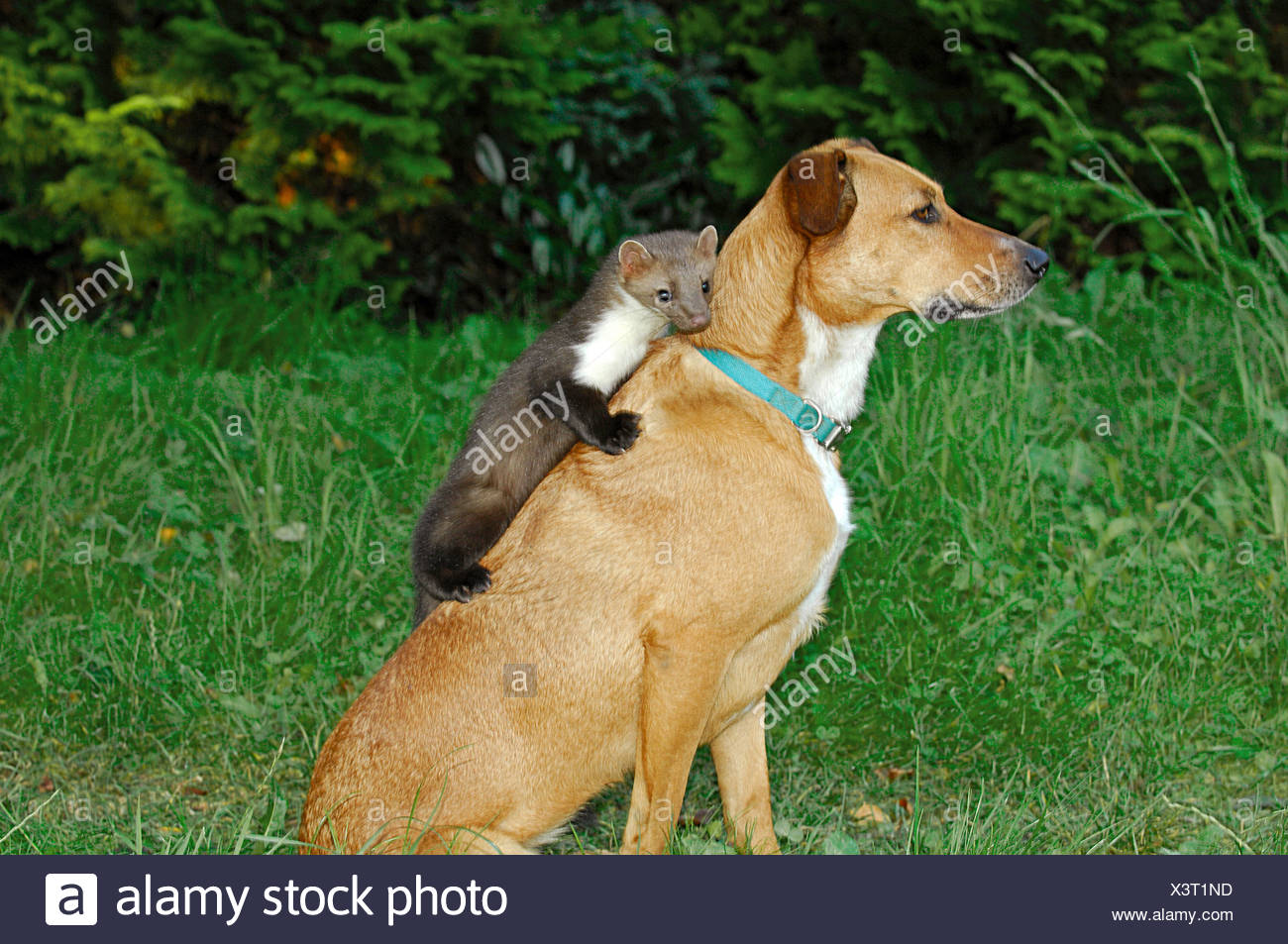 Amicizia Animale Giovani Faina Sulla Meta Del Cane Di Razza Foto Stock Alamy