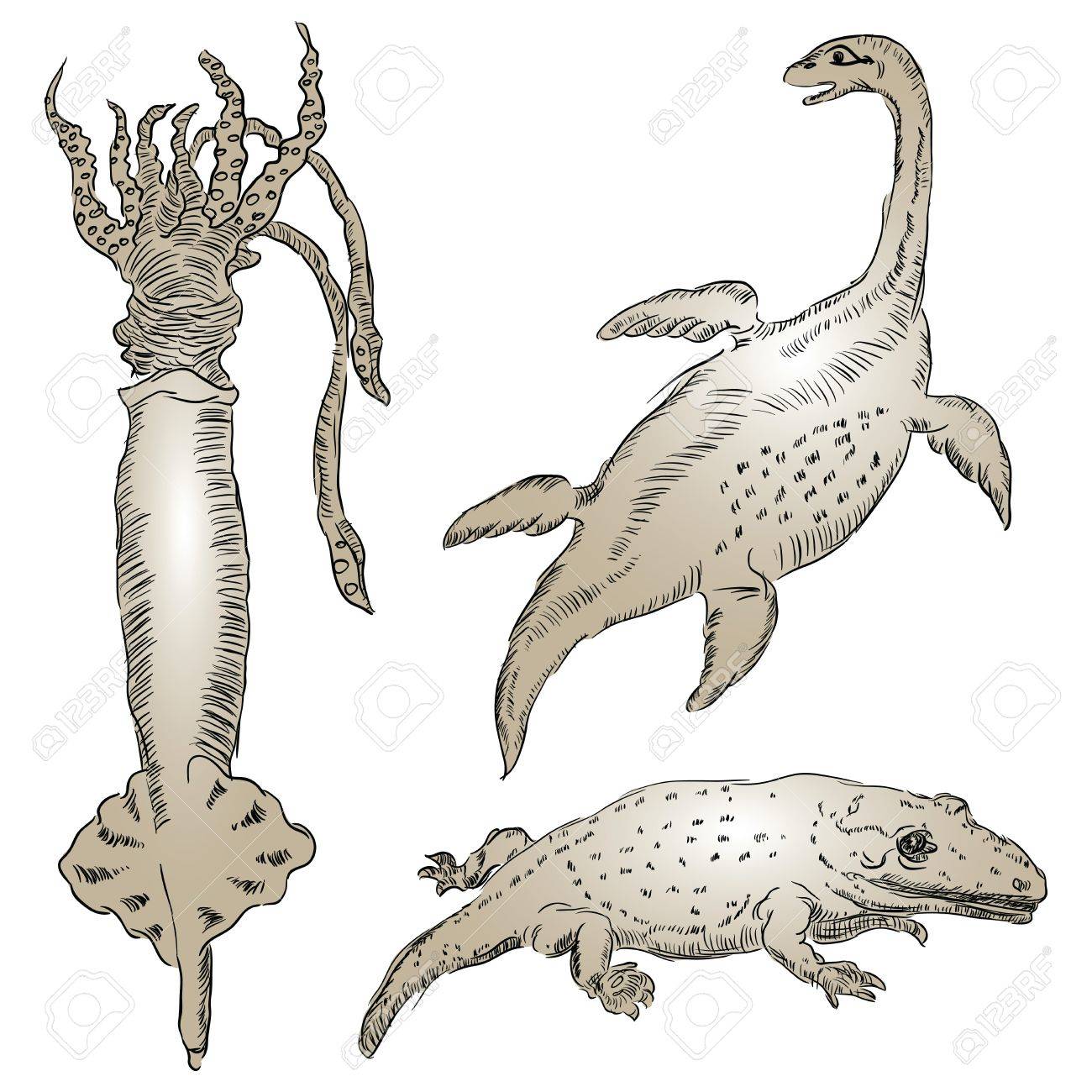 Vettoriale Fossili Di Animali Preistorici Che Vivono In Ambiente Acquatico Vector Illyustrvtsiya La Figura E Fatto A Mano Image 13249051