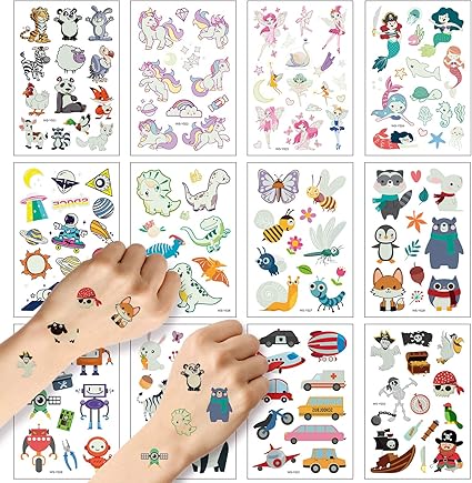 Zerhok 12 Fogli Tatuaggi Temporanei Per Bambini Adesivi Tatuaggio Animale Fata Dinosauri Uicorni E Vari Animali Brillano Al Buio Per Le Feste Di Compleanno Amazon It Casa E Cucina
