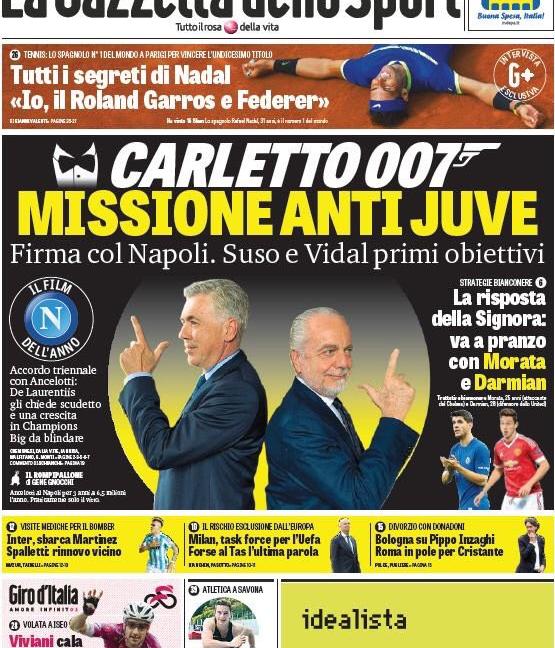 La Gazzetta Dello Sport Apre Carletto 007 Missione Anti Juve Tuttomercatoweb Com
