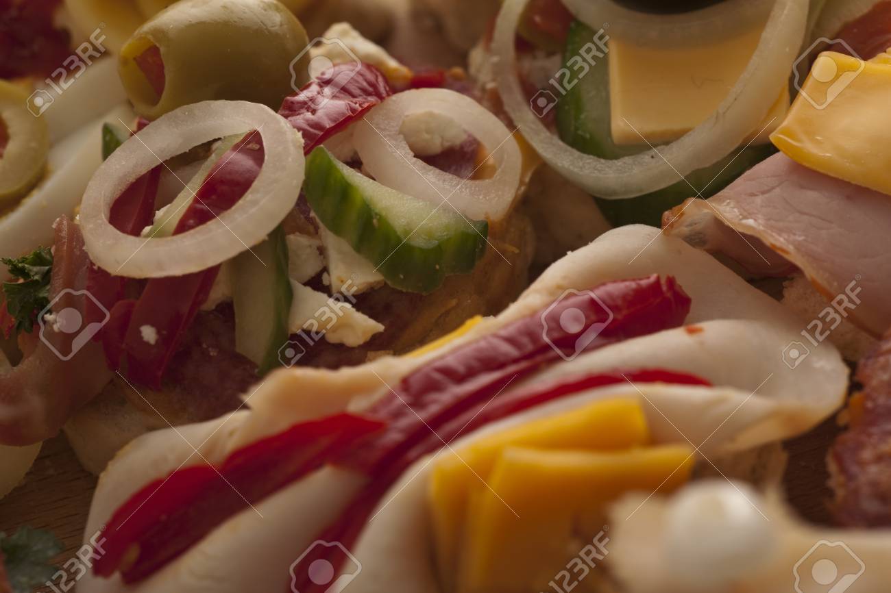 Immagini Stock Assortimento Di Antipasti A Base Di Una Varieta Di Salumi Formaggi E Verdure In Mostra Ad Una Festa Image 17597577
