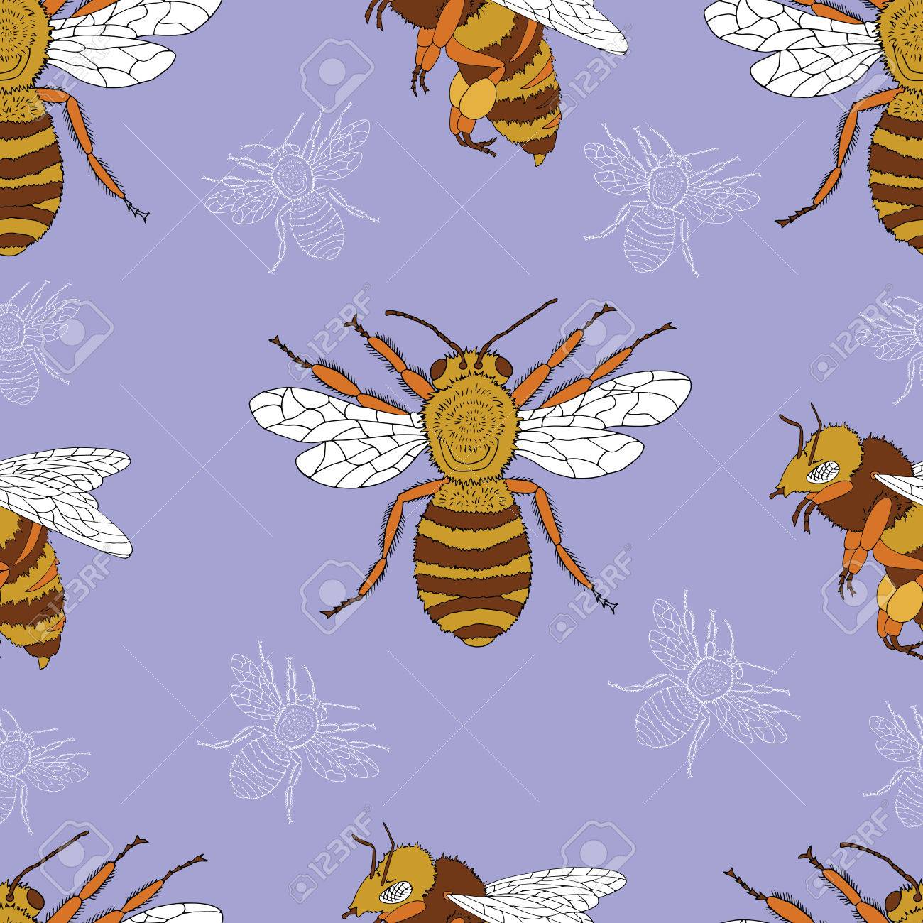 Vettoriale Modello Estate Senza Soluzione Di Continuita Con Cute Ape Colorata Illustrazione Doodle Con Elementi D Epoca Disegnati A Mano Ripetuto Sfondo Image 62160085