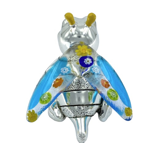 Ape In Resina Laminata Argento 800 Con Ali In Resina Colorata