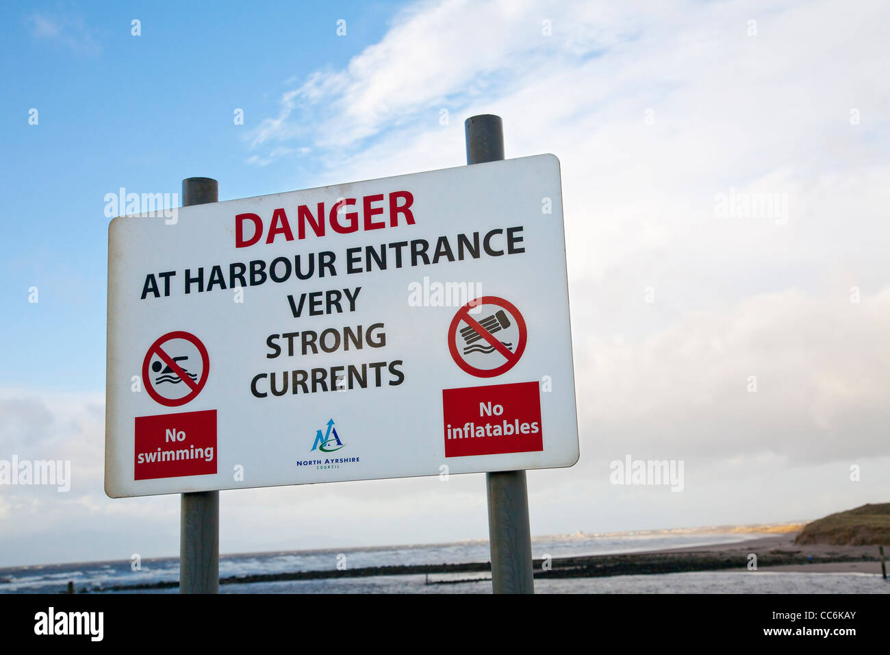 Segnaletica Di Pericolo Attenzione Di Forti Correnti Foto Stock Alamy