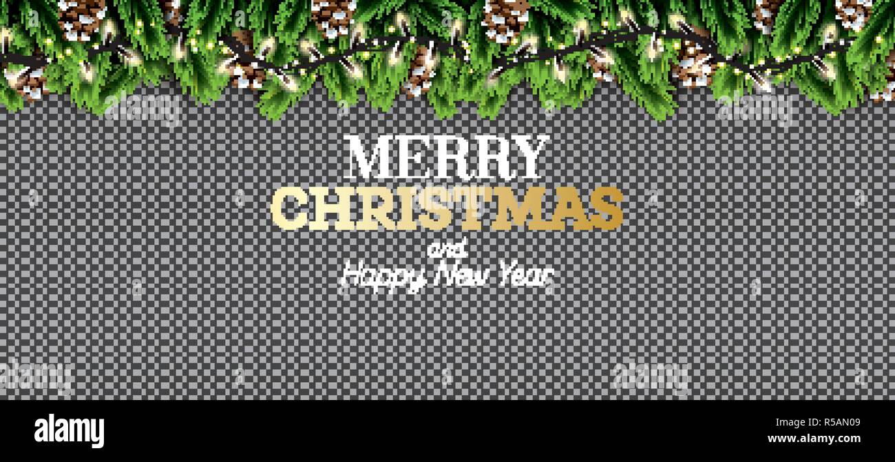 Ramo Di Abete Con Luci Al Neon E Cono Di Pino Su Sfondo Trasparente Auguri Di Buon Natale Felice Anno Nuovo Illustrazione Vettoriale Immagine E Vettoriale Alamy