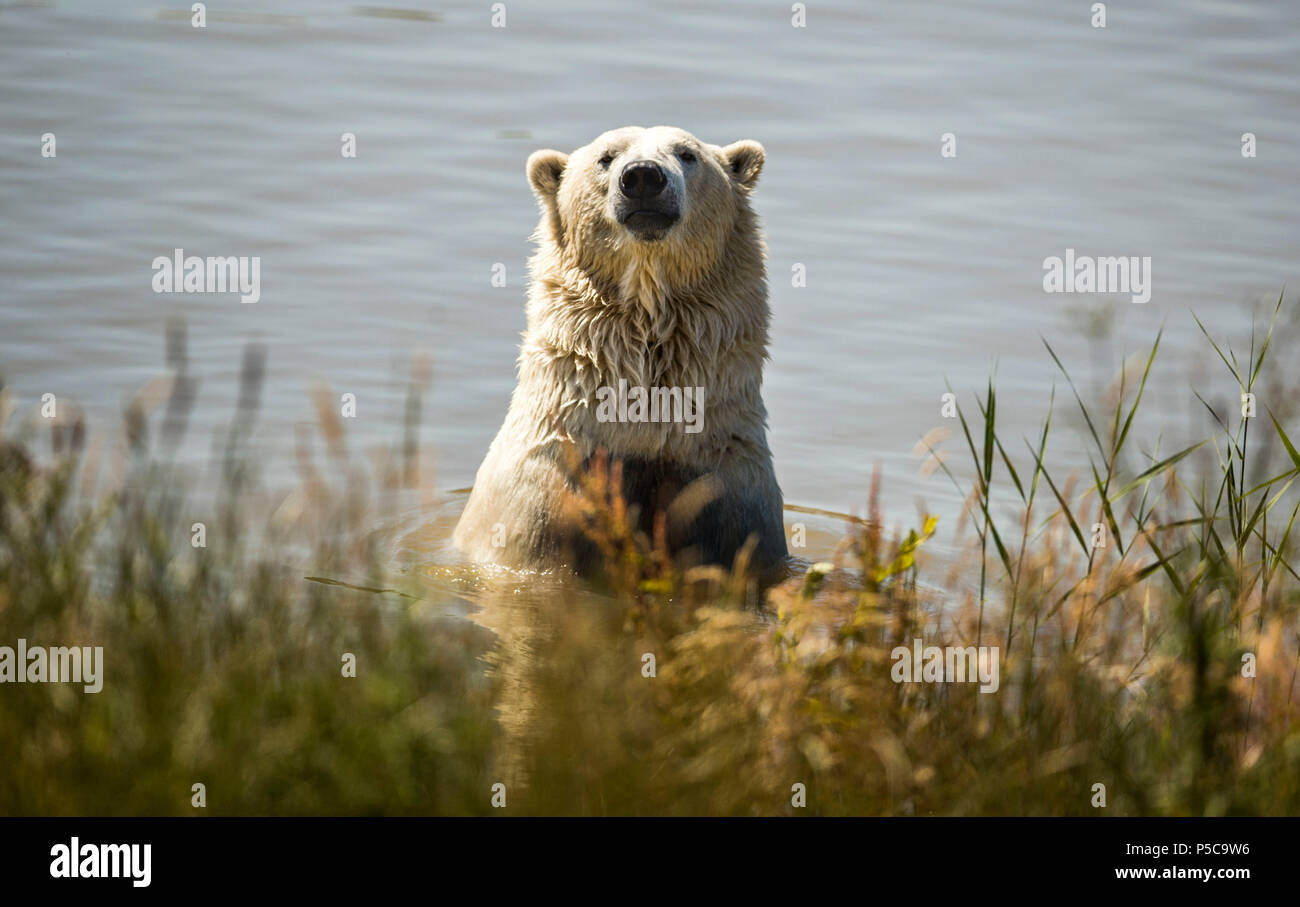 Orso Polare Pixel Gode Di Un Tuffo In Acqua A Yorkshire Wildlife Park Come Le Temperature Sono Previsti Per Aumentare Questa Settimana Foto Stock Alamy