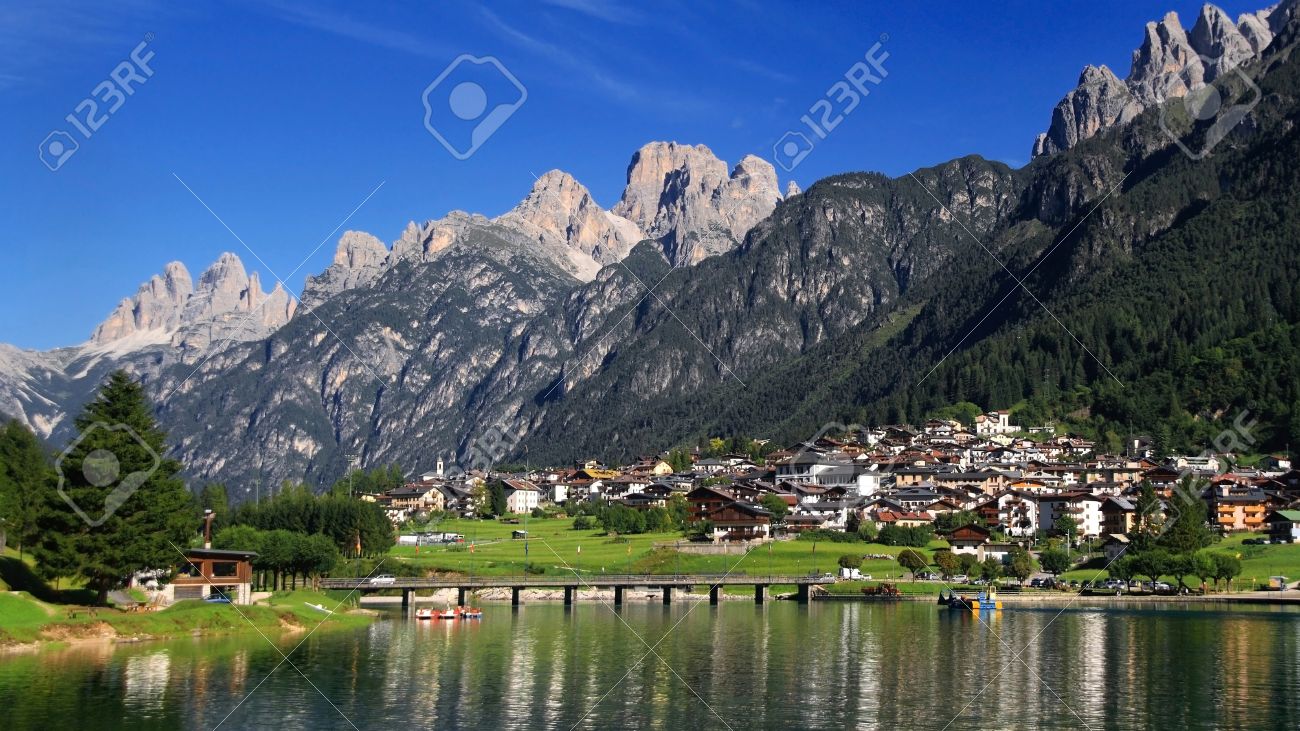 Auronzo Di Cadore And Its Lake In The Province Of Belluno Veneto Stock Photo Picture And Royalty Free Image Image 18987161