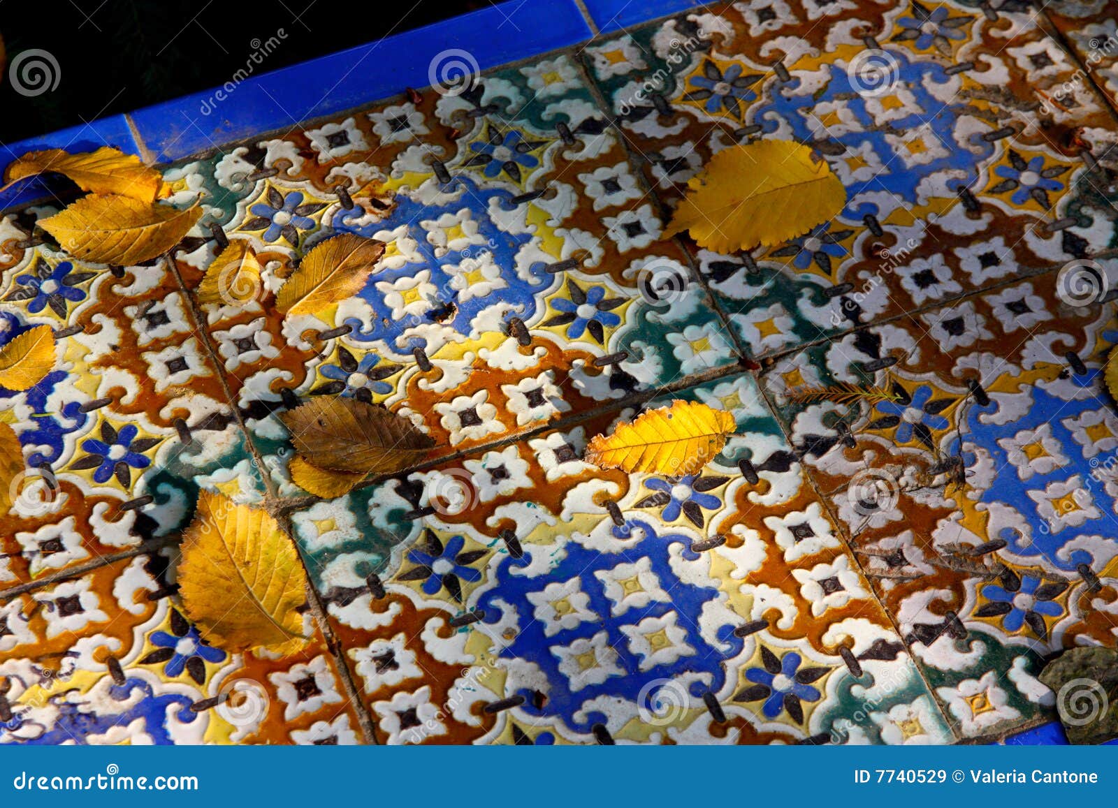 Leaves On The Azulejos Seville Stock Image Image Of Fall Yellow 7740529