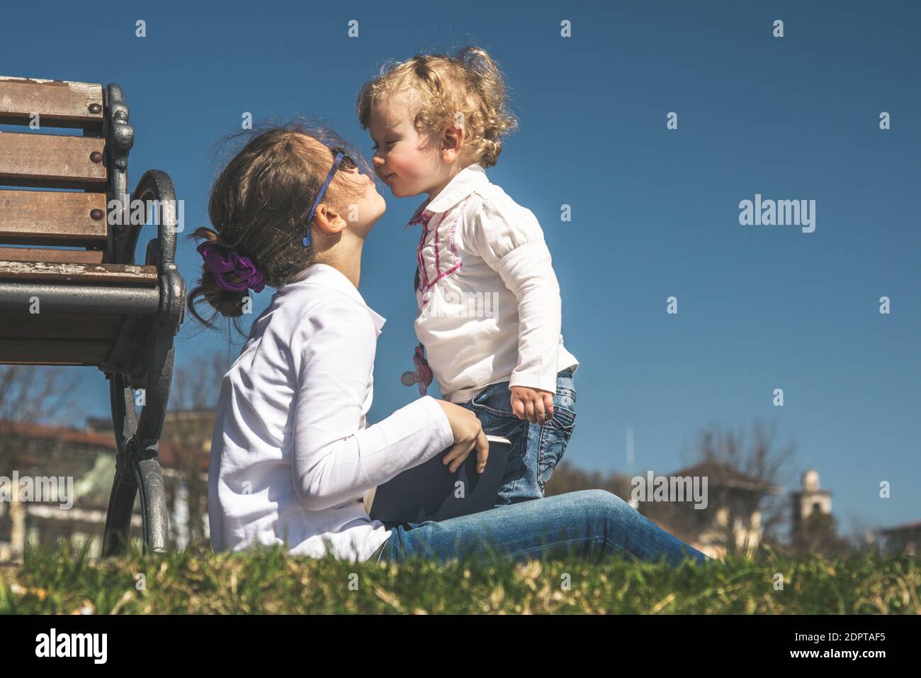 Bambina Di Due Anni Di Origine Sudamericana Da Un Tenero Bacio Al Papa Bianco Di Origine Europea All Interno Di Un Parco Buy This Stock Photo And Explore Similar Images At Adobe