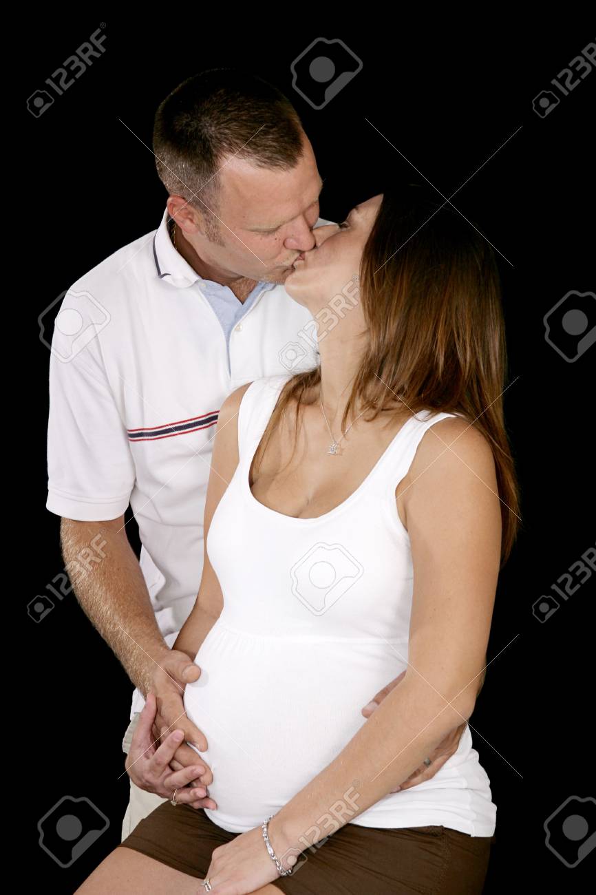Immagini Stock Bacio Tenero Fra Una Coppia Giovane Che Prevede Un Bambino Priorita Bassa Nera Image 2268855