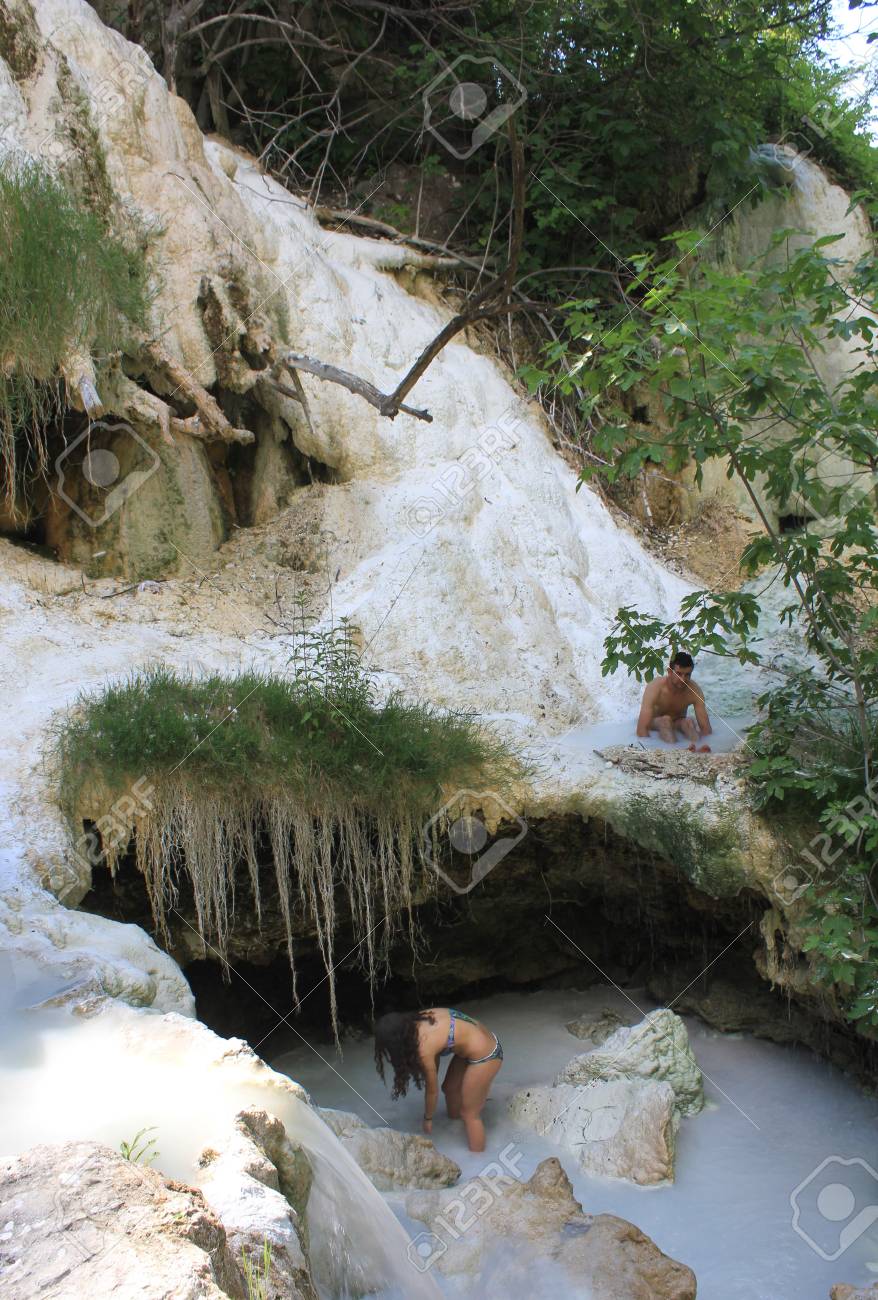 Bagni San Filippo Italy June 2 2017 Two Person Bathing In Stock Photo Picture And Royalty Free Image Image 79846642