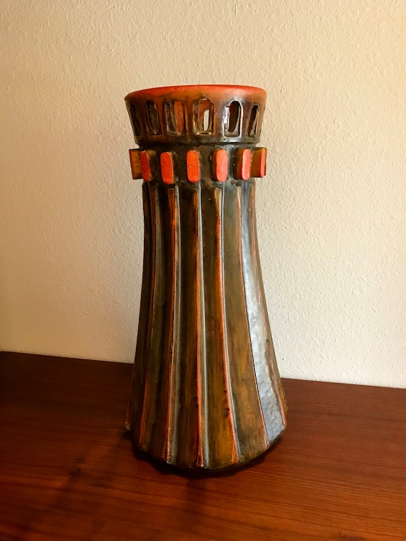 Alvino Bagni Art Pottery Vase 14 5 Inches Vintage Original Etsy