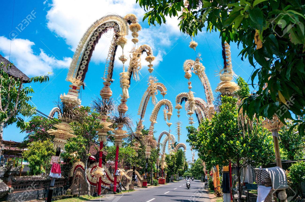 Immagini Stock Penjors Balinesi Tradizionali Lungo La Strada Di Bali Indonesia Alti Pali Di Bambu Con Decorazioni Sono Collocati In Onore Degli Dei Indu Nelle Feste Religiose Come Galungal Kuningan Image 87843340