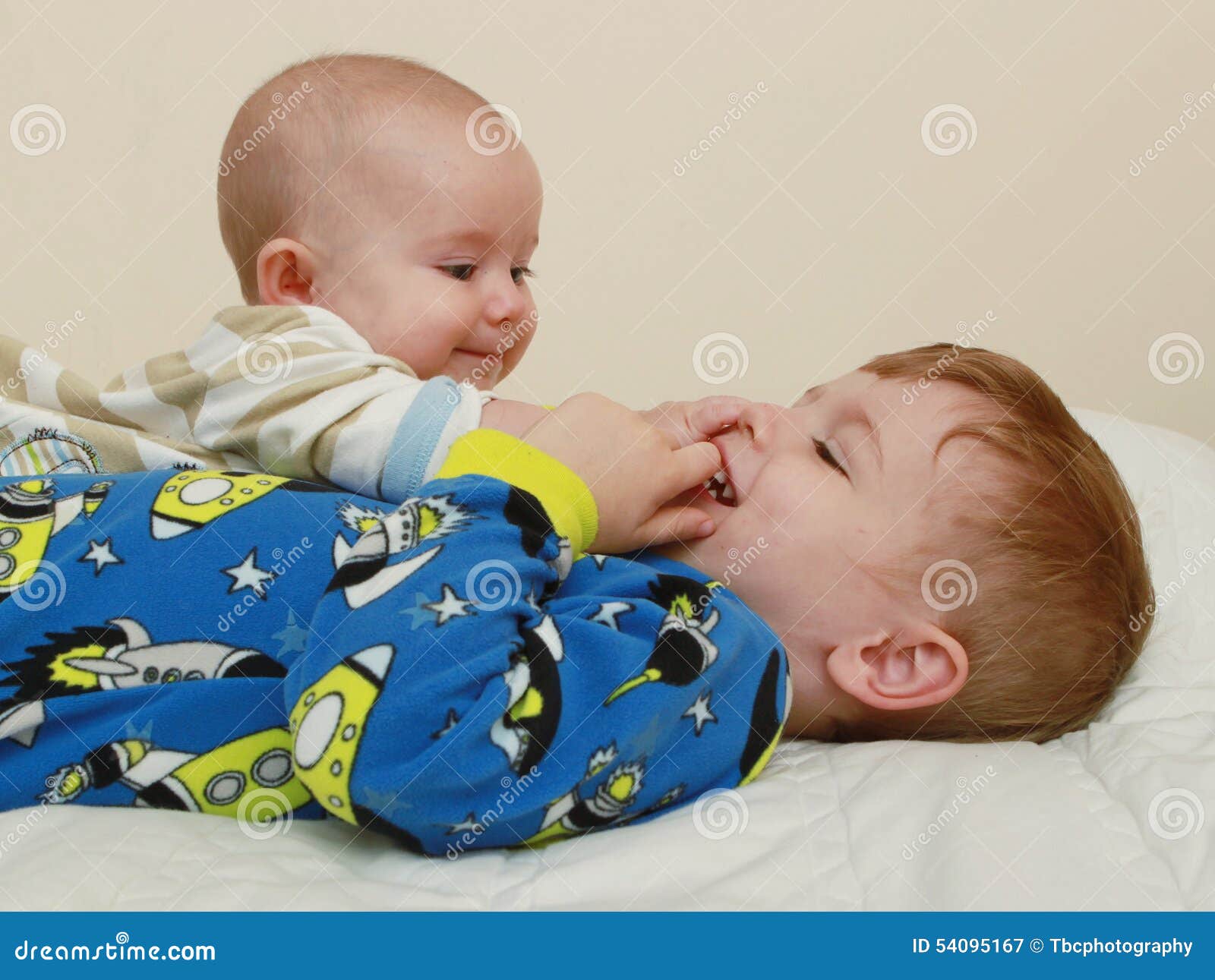 Bambini Che Ridono E Che Giocano A Letto Immagine Stock Immagine Di Bambino Base 54095167