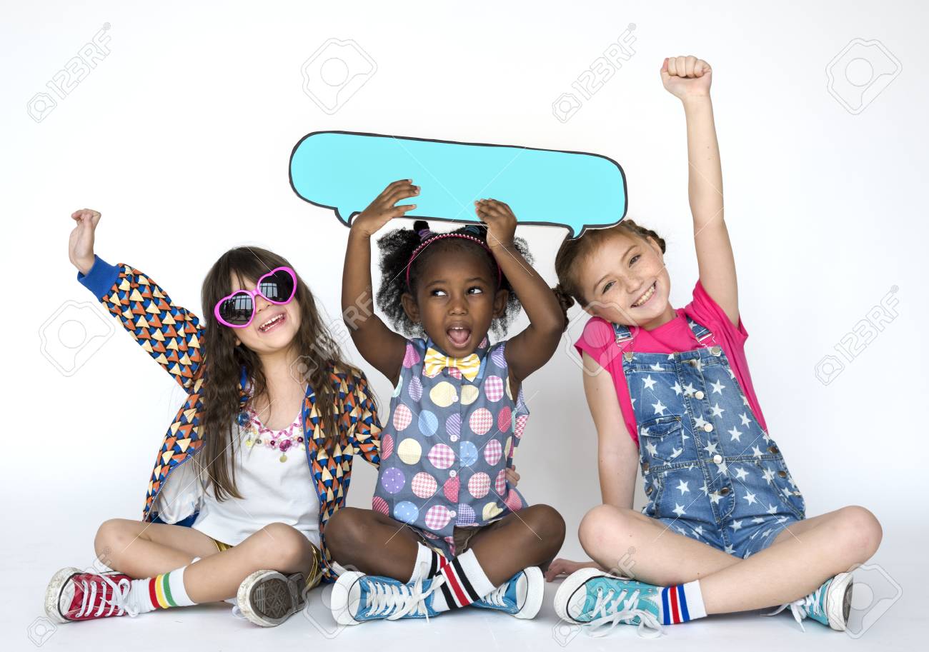 Immagini Stock I Bambini Che Sorridono Felicita Speech Bubble Ritratto Di Studio Di Divertimento Image 79665994