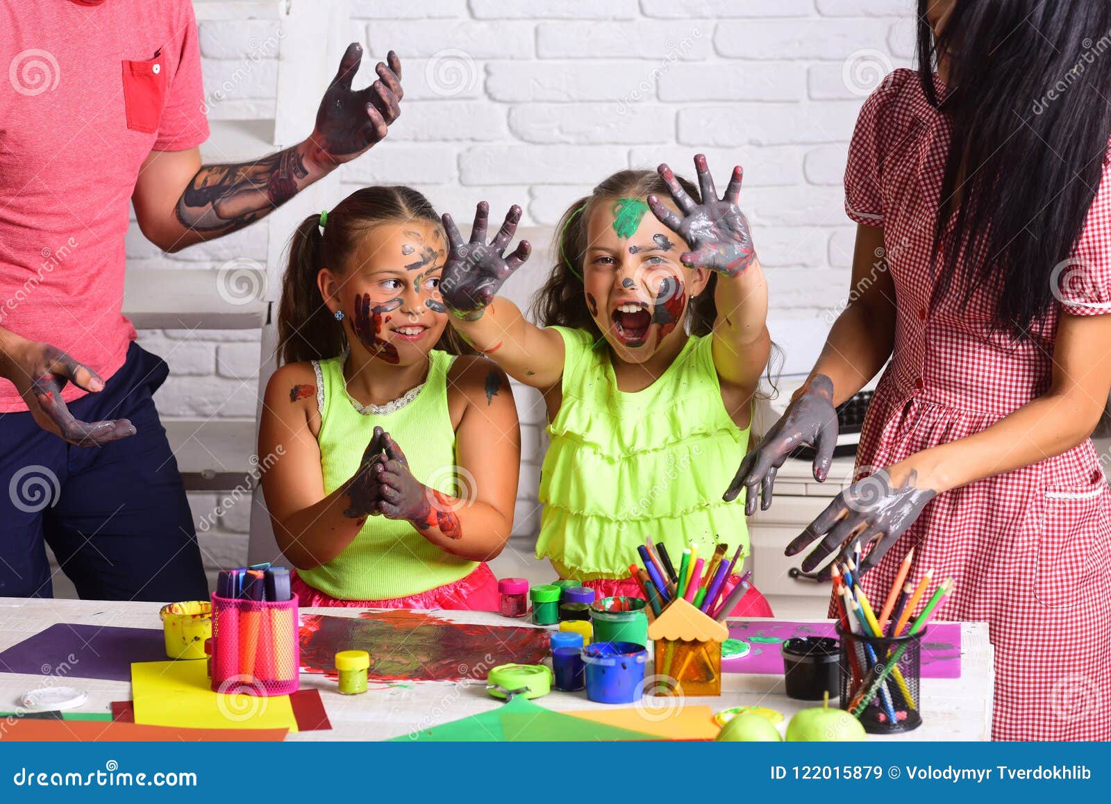 Bambini Che Sorridono Con Le Mani Colorate In Pitture Immagine Stock Immagine Di Colorato Famiglia 122015879