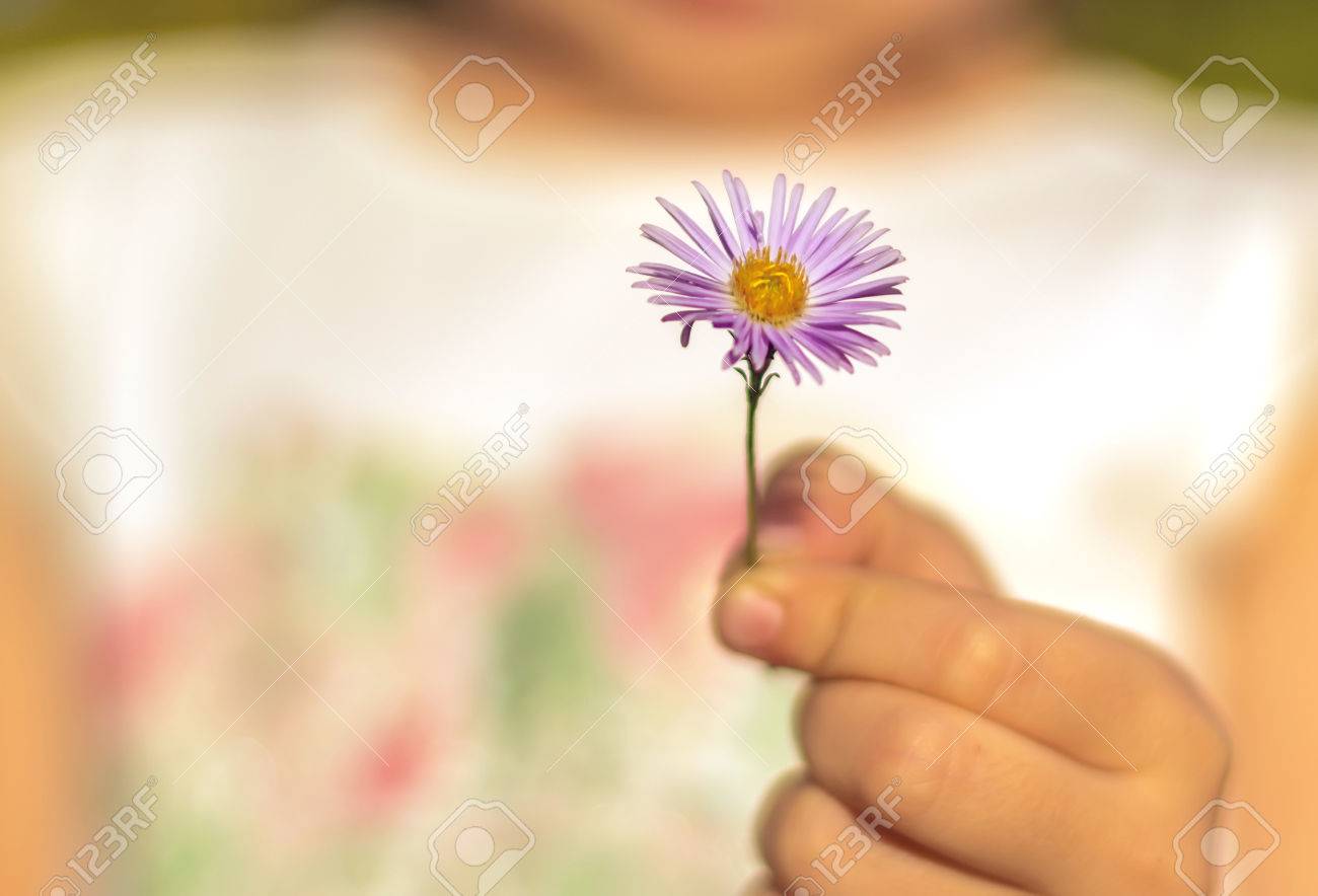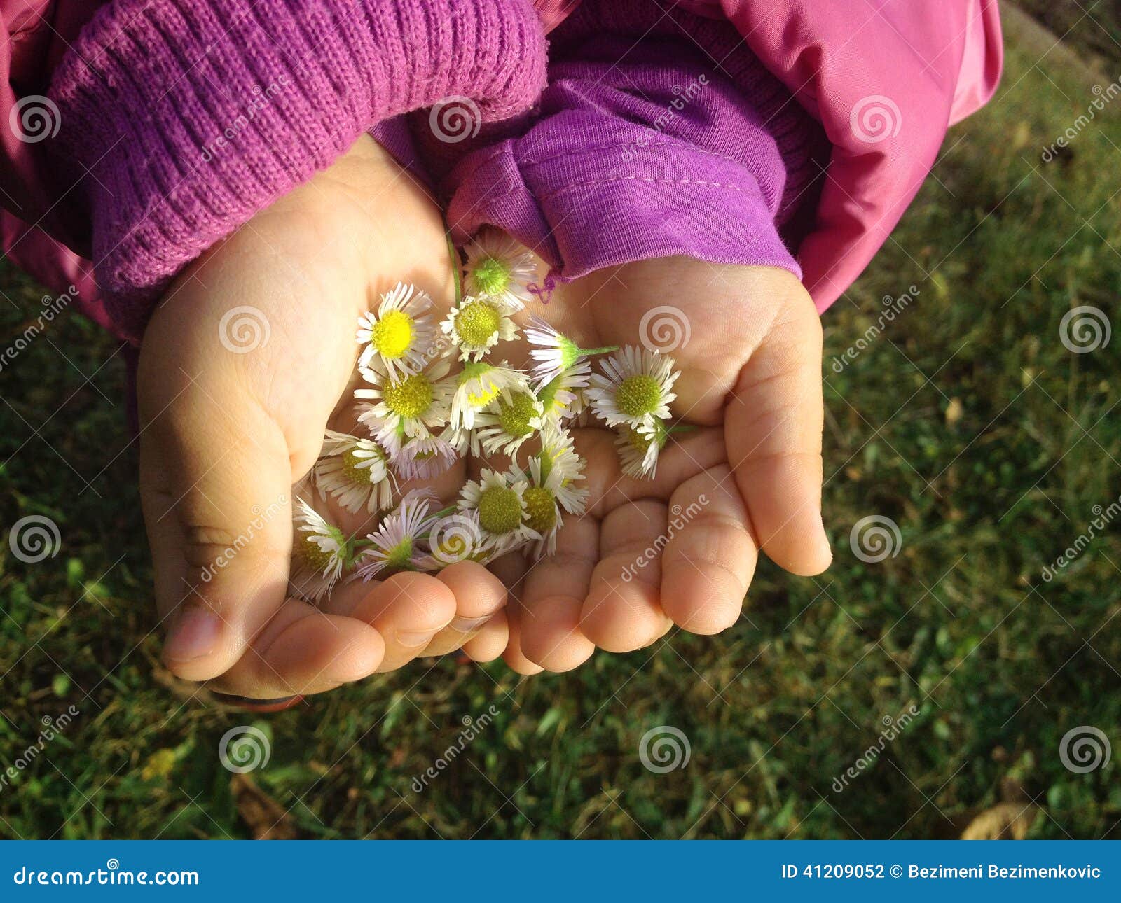Immagini Stock La Mano Dei Bambini Che Da Fiore Selvaggio Con Amore Image 53455786