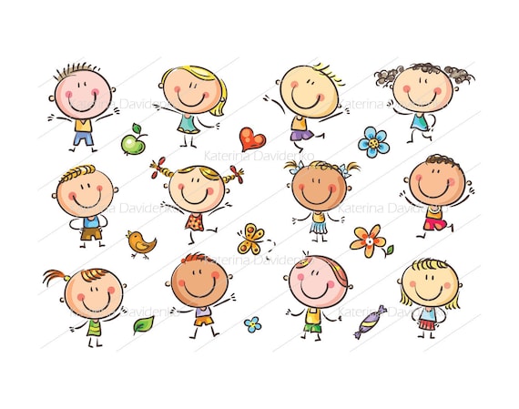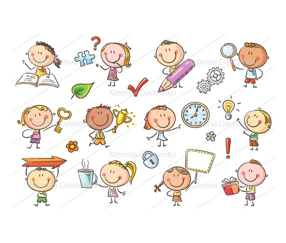 Felice Bambini Clipart Bambini Con Simboli Clipart Per Etsy