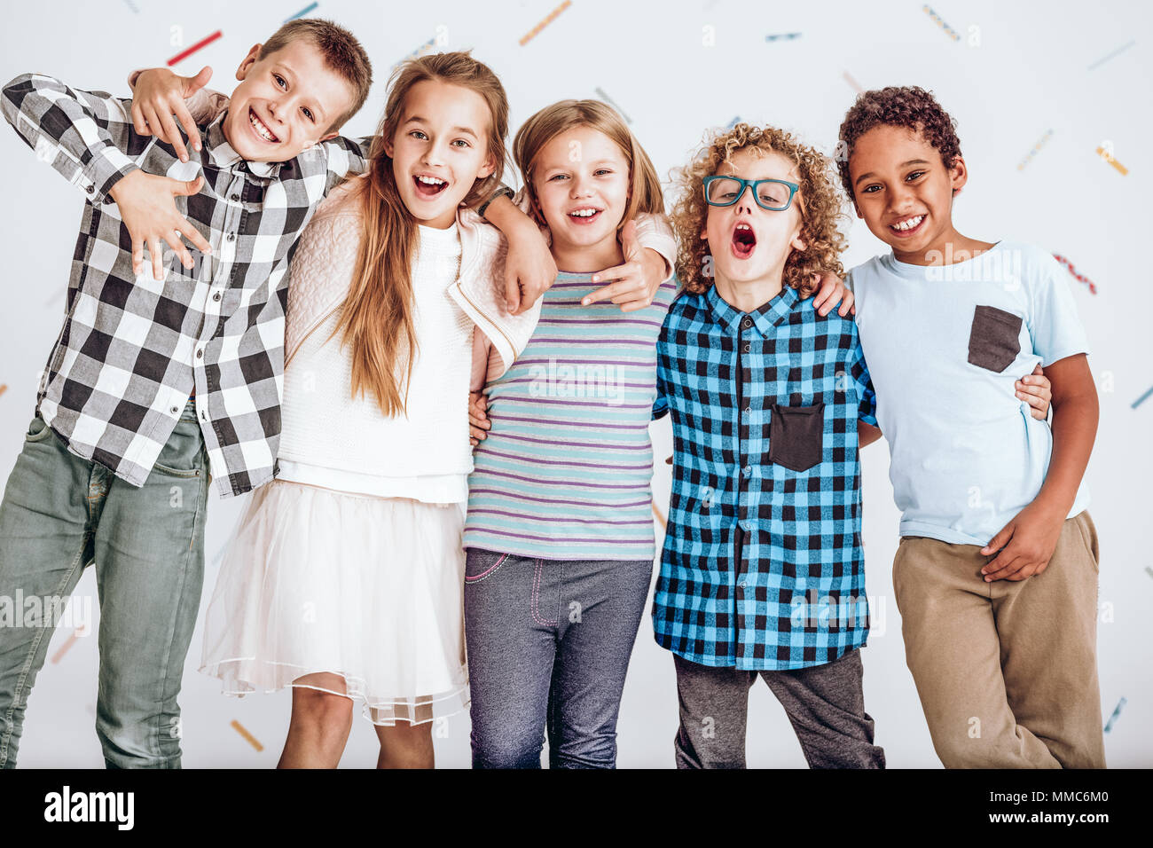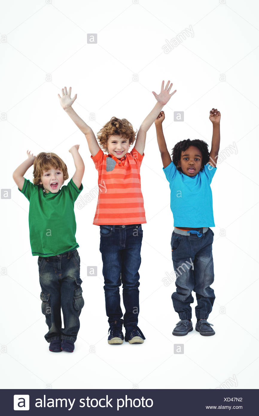 Gruppo Di Felici I Bambini In Piedi In Una Fila E Sorridente Foto Stock Alamy