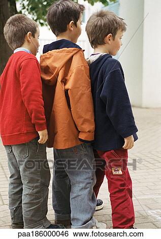 Tre Bambini Fila Indiana Vista Laterale Piena Lunghezza Primo Piano Archivio Fotografico Paa186000046 Fotosearch