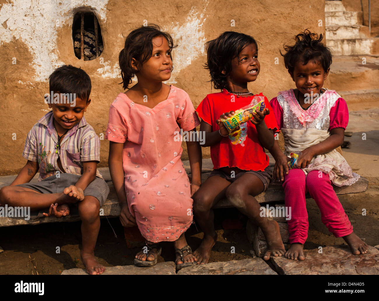 Felici I Bambini Indiani Nel Tipico Villaggio Di Rajasthani Di Nimaj Rajasthan India Settentrionale Foto Stock Alamy