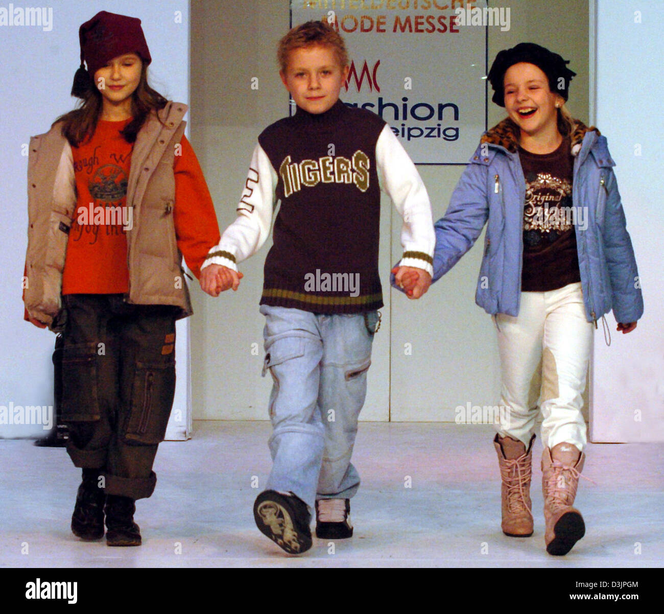 Dpa Bambini Modelli L Marie Martin E Maria Antonia Tenere Mani E Sorriso A Piedi Giu Per La Passerella Presentando I Bambini Vestiti Per L Autunno Inverno 2005 2006 Presso I Bambini Fashion Fair
