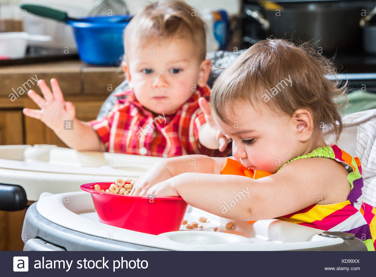 Due Simpatici I Bambini Mangiano Insieme Per La Prima Colazione Foto Stock Alamy