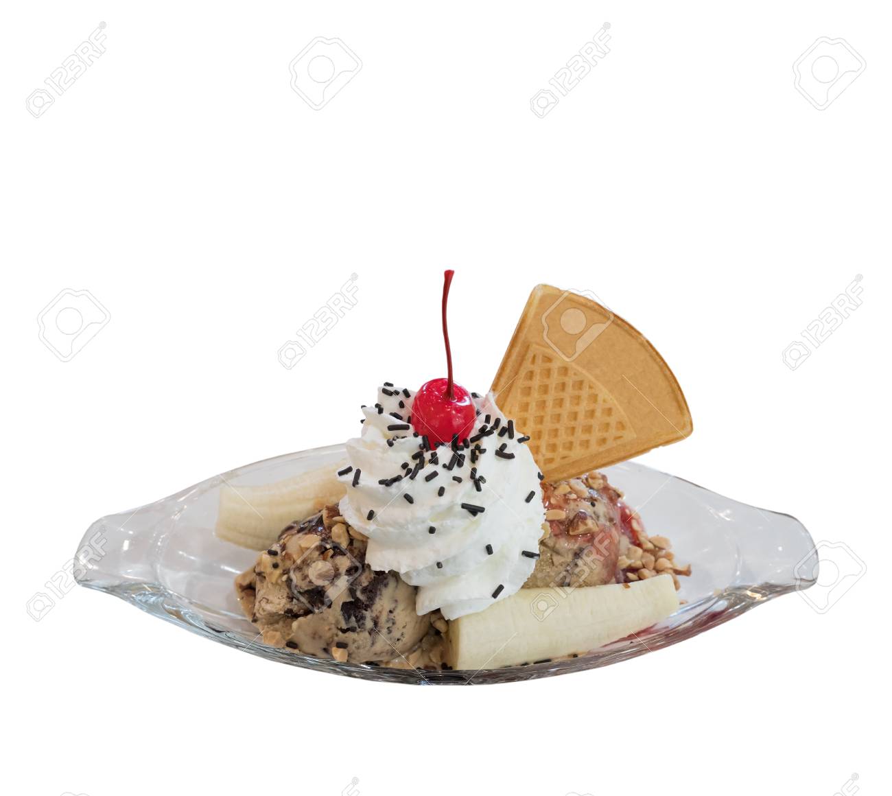 Immagini Stock Gelato Al Gusto Di Caffe Con La Banana Split E Panna Montata Su Sfondo Bianco Image 72059119