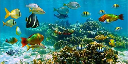 Nan Wind Panorama In Una Barriera Corallina Con Banco Di Pesci Tropicali Colorato Pittura Artistica Da